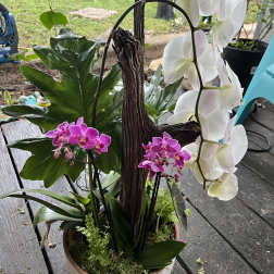 Price: $303.00Orchid Kokedama Garden with Driftwood Sculpture